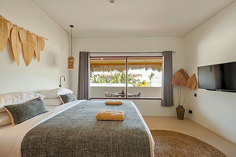 Wake up to the sound of the sea and step straight onto the sand, where two pools set the scene for a laid-back day: an outdoor pool with a view and a private pool for a touch of seclusion. Beachfront access puts the shore at arm’s reach, perfect for morning strolls or sunset swims. For a little underwater exploration, snorkeling is available for an extra charge, adding a splash of Lombok’s marine life to the itinerary.